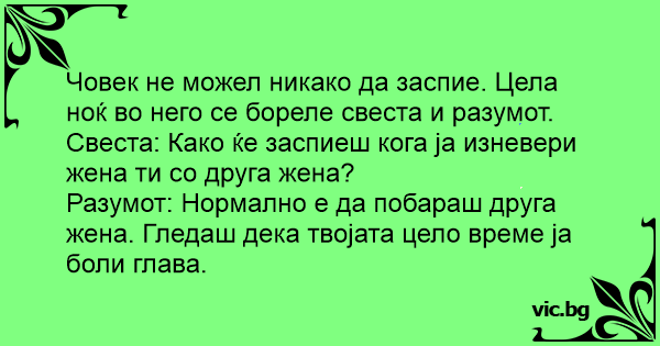 Човек не можел никако да заспие. Цела ноќ во него се бореле свеста и разумот.