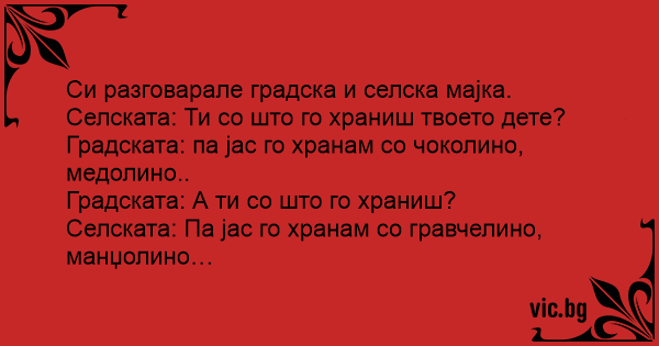 Селската: Па јас го хранам со гравчелино, манџолино…