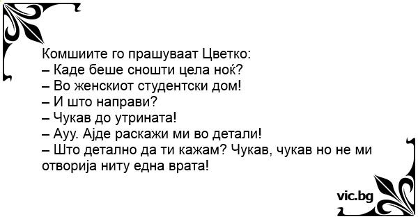 – Што детално да ти кажам? Чукав, чукав но не ми отворија ниту една врата!