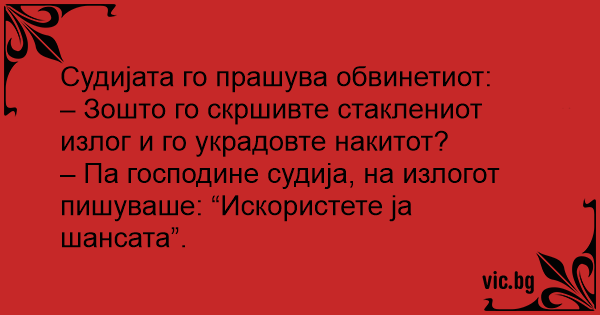 – Па господине судија, на излогот пишуваше: “Искористете ја шансата”.
