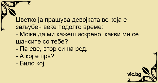 - Може да ми кажеш искрено, какви ми се шансите со тебе?