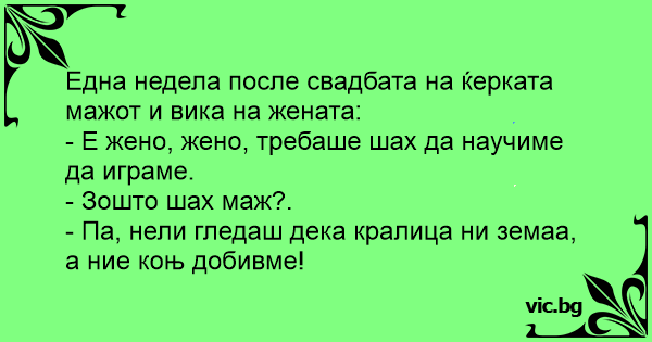 Една недела после свадбата на ќерката мажот и вика на жената:
