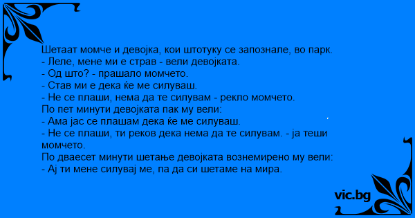 - Не се плаши, нема да те силувам - рекло момчето.