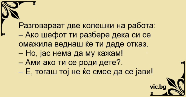 – Ако шефот ти разбере дека си се омажила веднаш ќе ти даде отказ.