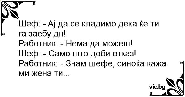 Работник: - Знам шефе, синоќа кажа ми жена ти...