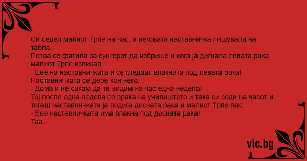 И малиот Трпе си се врти, си ги собира книгите, го става ранецот на грб и наставничката се врти и го прашува: