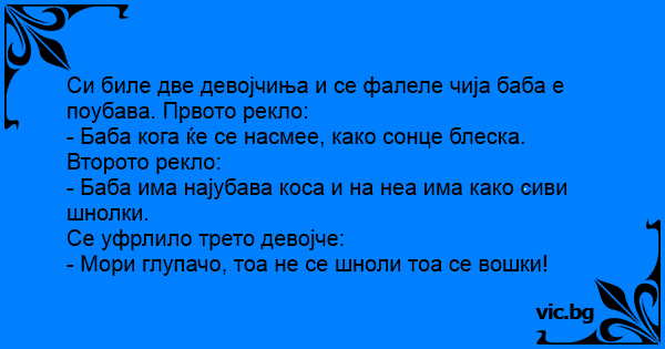 Си биле две девојчиња и се фалеле чија баба е поубава. Првото рекло: