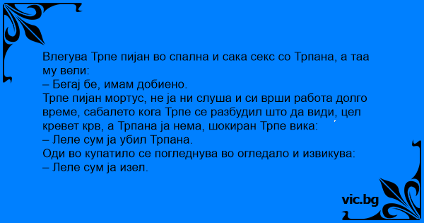 Влегува Трпе пијан во спална и сака cekc со Трпана, а таа му вели: