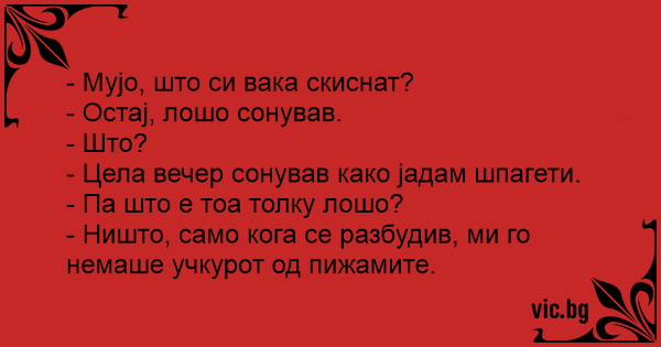 - Цела вечер сонував како јадам шпагети.