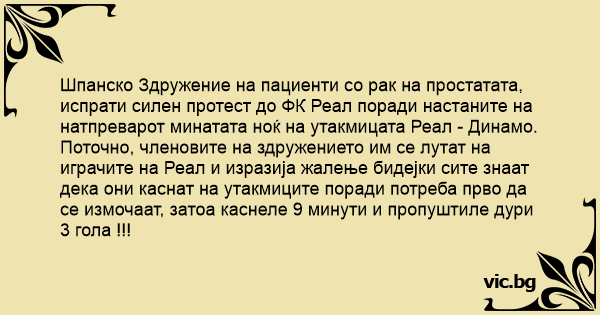 Шпанско Здружение на пациенти со рак на простатата, испрати силен протест до ФК Реал поради настаните на натпреварот минатата ноќ на утакмицата Реал - Динамо.