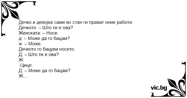 Дечкото го бацува цицето, и покажува меѓу нозете на девојката.