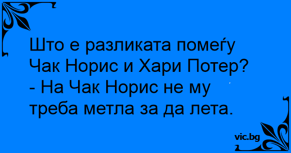 - На Чак Норис не му треба метла за да лета.
