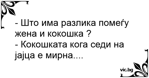 - Што има разлика помеѓу жена и кокошка ?