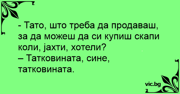 - Тато, што треба да продаваш, за да можеш да си купиш скапи коли, јахти, хотели?