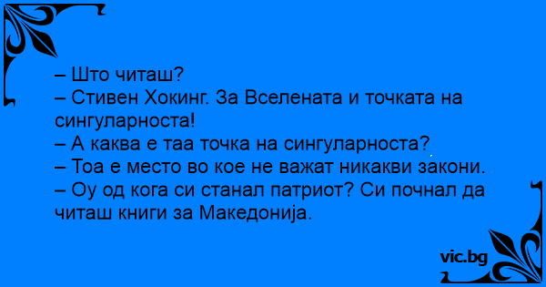 – Оу од кога си станал патриот? Си почнал да читаш книги за Македонија.