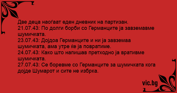27.07.43: Се боревме со Германците за шумичката кога дојде Шумарот и сите не избрка.