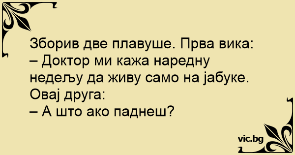 – Доктор ми кажа наредну недељу да живу само на јабуке.