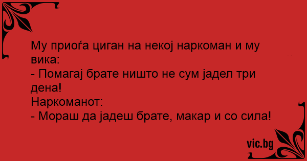 Му приоѓа циган на некој наркоман и му вика: