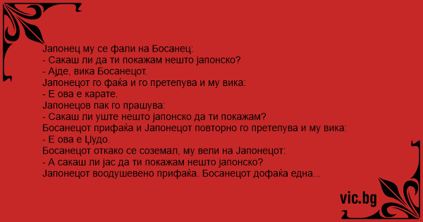 Босанецот прифаќа и Јапонецот повторно го претепува и му вика: