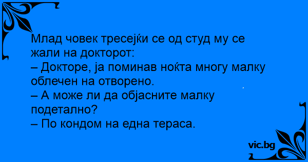 – Докторе, ја поминав ноќта многу малку облечен на отворено.