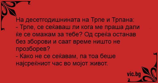 - Трпе, се сеќаваш ли кога ме праша дали ќе се омажам за тебе? Од среќа останав без зборови и саат време ништо не прозборев?