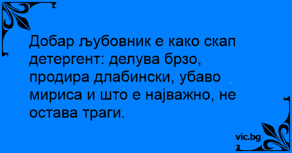Добар љубовник е како скап детергент: делува брзо, продира длабински, убаво мириса и што е најважно, не остава траги.