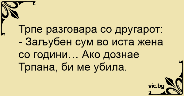 - Заљубен сум во иста жена со години… Ако дознае Трпана, би ме убила.