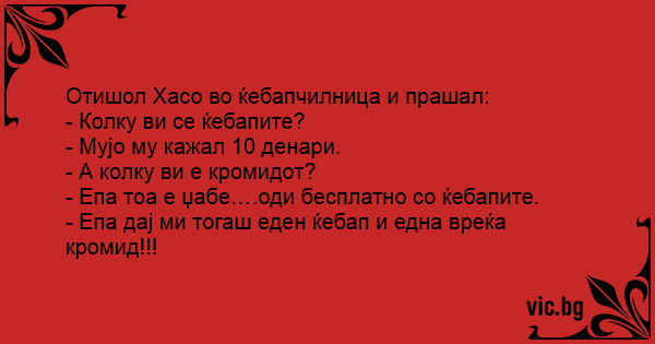 - Епа дај ми тогаш еден ќебап и една вреќа кромид!!!