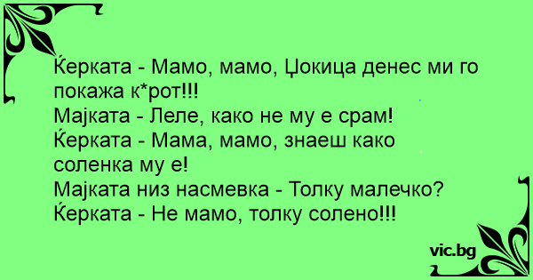 Ќерката - Мамо, мамо, Џокица денес ми го покажа курот!!!
