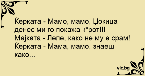 Ќерката - Мамо, мамо, Џокица денес ми го покажа к*рот!!!