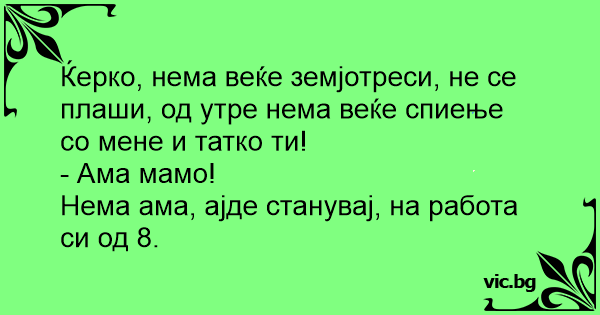 Ќерко, нема веќе земјотреси, не се плаши, од утре нема веќе спиење со мене и татко ти!