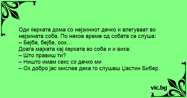 Доаѓа мајката кај ќерката во соба и и вика: