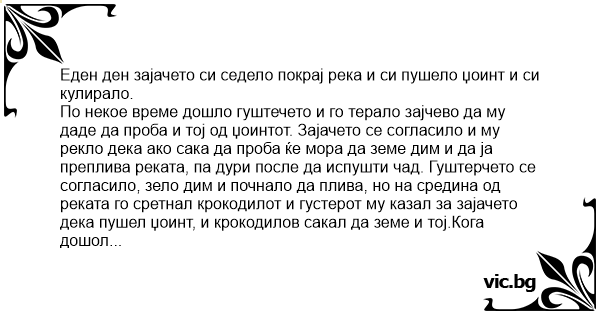 Еден ден зајачето си седело покрај река и си пушело џоинт и си кулирало.