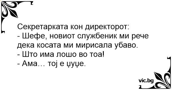 - Шефе, новиот службеник ми рече дека косата ми мирисала убаво.