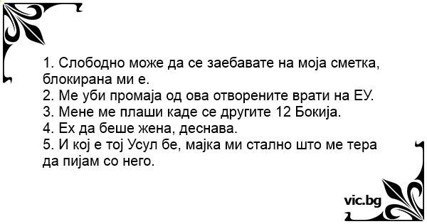 1. Слободно може да се заебавате на моја сметка, блокирана ми е.