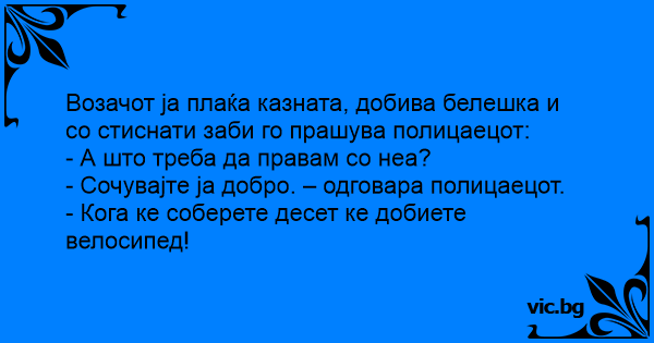 Возачот ја плаќа казната, добива белешка и со стиснати заби го прашува полицаецот: