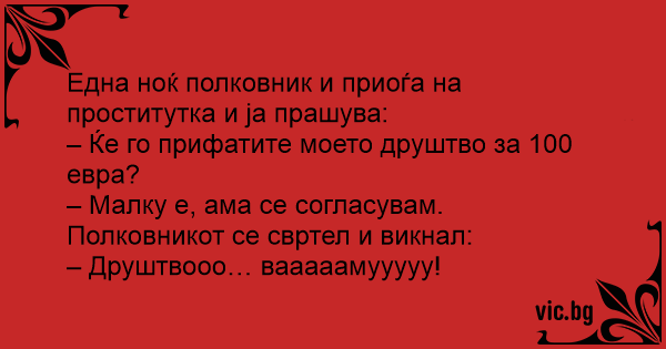 Една ноќ полковник и приоѓа на пpoctиtуtka и ја прашува: