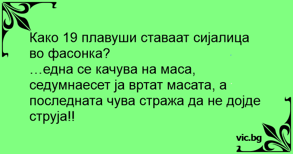 …една се качува на маса, седумнаесет ја вртат масата, а последната чува стража да не дојде струја!!