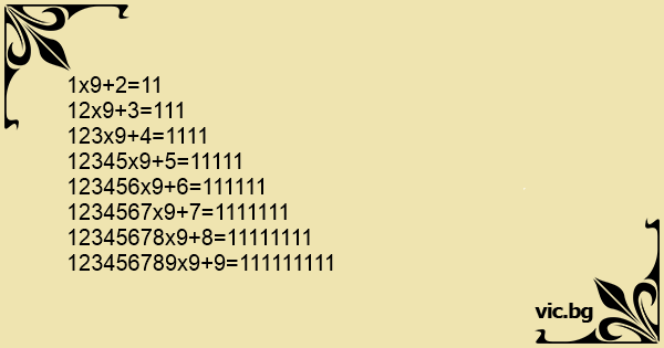1x9+2=11 12x9+3=111...