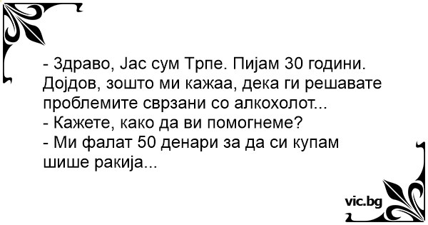 - 3драво, Јас сум Tpпe. Пијам 30 години. Дојдов, зошто ми кажаа, дека ги решавате проблемите сврзани со алкохолот...