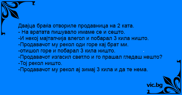 -Продавачот му рекол ај зимај 3 кила и да те нема.
