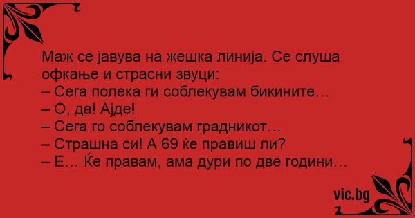 Маж се јавува на жешка линија. Се слуша офкање и страсни звуци: