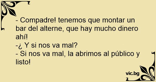 - Compadre! tenemos que montar un bar del alterne, que hay mucho dinero ahí!