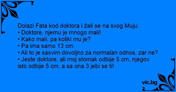 • Jeste doktore, ali moj stomak odbije 5 cm, njegov isto odbije 5 cm, a sa ona 3 jebi se ti!