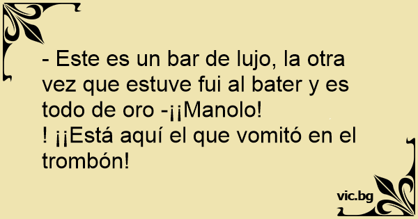 - Este es un bar de lujo, la otra vez que estuve fui al bater y es todo de oro -¡¡Manolo!