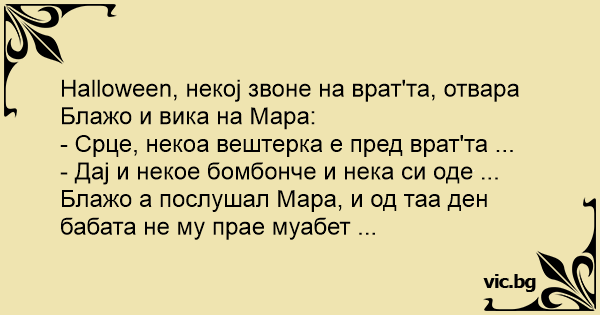 Halloween, некој звоне на врат'та, отвара Блажо и вика на Мара: