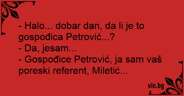 - Gospođice Petrović, ja sam vaš poreski referent, Miletić...