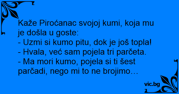 Kaže Piroćanac svojoj kumi, koja mu je došla u goste:
