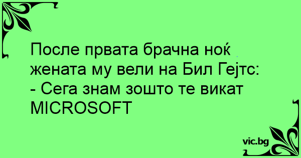 После првата брачна ноќ жената му вели на Бил Гејтс: