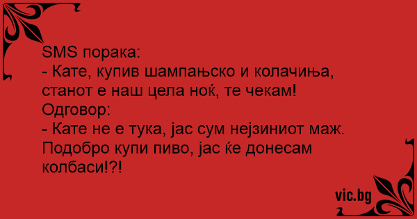 - Кате не е тука, јас сум нејзиниот маж. Подобро купи пиво, јас ќе донесам колбаси!?!
